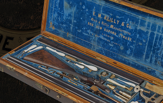 Those interested in the ‘pretty pretty’ could well have their heads turned by lot 1225, formerly the property of King Alfonso XII of Spain. Described as ‘respendant’  the cased presentation 12-bore sidelever bar-in-wood hammer rifle and shotgun garniture are certainly lovely and estimated to fetch £15,000 – £20,000.