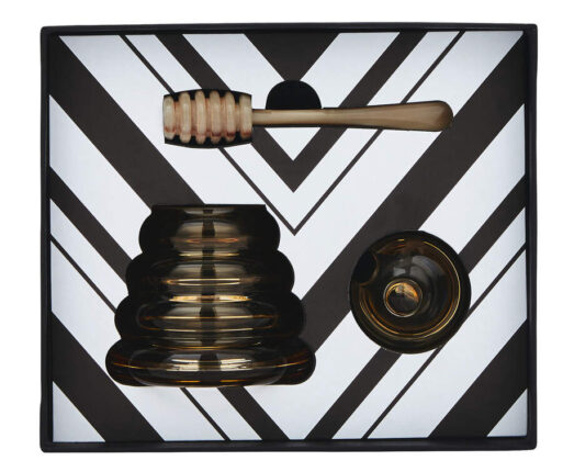 There’s a buzz about this beehiveshaped crystal jar and horn drizzler.