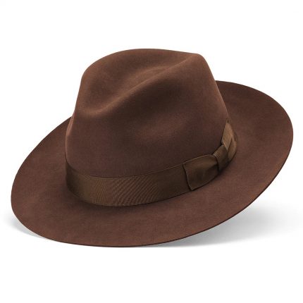 Limited-edition fedora made from top-quality beaver fur felt, which is velvet-soft but lightweight. The brim measures 6cm, the crown height is 10cm. Also available in navy and grey. For pates in the paddock.