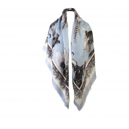 Add springtime glamour once you’ve ditched the coat with wildlife artist Clare Haggas’ work on a wool and silk wrap. Choose from blush pink or pale blue (pictured).