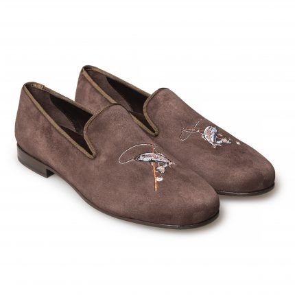 Smart and made to order. Choose the colour of suede, leather lining, trim and sole, and add your initials (embroidered or embossed) to make your mark. Wear your catch with pride.