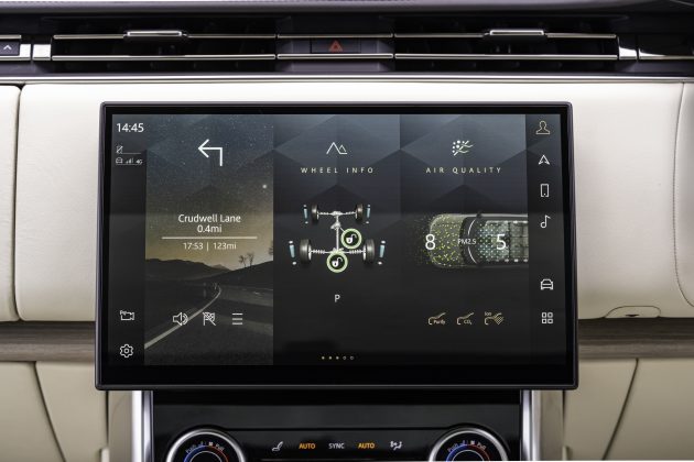 All this made the first part of our test drive quite uneventful. We headed from west Wiltshire down the M5 to the Severn Bridge, which truly was jaw-dropping in the early sunshine after another wet night. The Range Rover cruised silently and comfortably down the motorway – once again, doing exactly what you’d expect from it. Talk moved from how lovely the interior veneer was to life problems for those of us in our late fifties and beyond. Probably not what Team Land Rover would have wanted, but an indicator of how comfortable the fast road section felt.