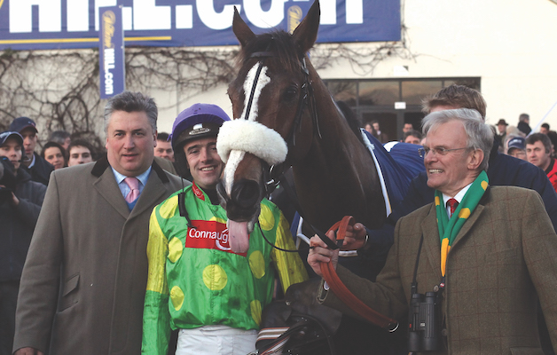 In recent years, the King George has become synonymous with leading trainer Paul Nicholls, having notched up a staggering 10 wins in the contest since the turn of the century and a record 12 in total. His most high-profile winner is two-time Cheltenham Gold Cup hero Kauto Star, who rattled off a remarkable five-fold of King George successes, including four in a row from 2006-09. His pilot was the winning-most rider in Cheltenham Festival history, Ruby Walsh, who also leads the race for King George wins [Kauto Star is pictured with Nicholls, Walsh and owner Clive Smith after his 2009 win].