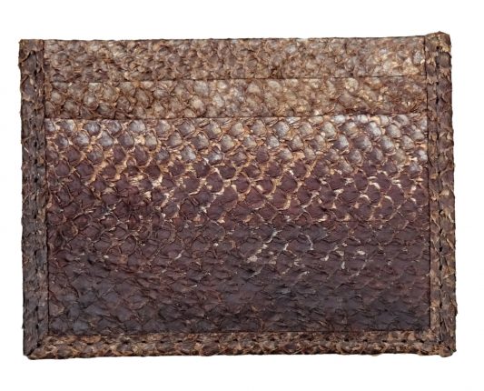 Made from fish leather, with salmon skins sourced from a Scottish smokehouse. Half of profits are donated to the Missing Salmon Alliance and the Wye & Usk Foundation.