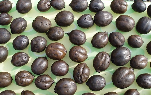 - Drain the walnuts and lay out on trays in a dry, airy place. After a few days they will have turned black.