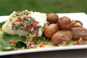 Barbecued turbot is perfect for summer served with an easy caper and chilli salsa