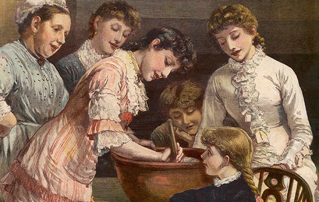 Like the Crown Jewels, festive trappings such as mince pies, holly and plum pottage fared poorly under Oliver Cromwell’s mirthless Commonwealth; however, come the Restoration, it enjoyed something of a resurrection. Indeed, up until the 1670s, this confection wasn’t confined to Christmas Day but, rather, was boiled up for other feast days, too, including All Saints’ Day (1 November) and the Solemnity of Mary, Mother of God (New Year’s Day). Thereafter, it came to be associated with 25 December, as Christmas pottage, but both that and plum pottage were served as a rich and filling first course, rather than to herald the end of the feast.