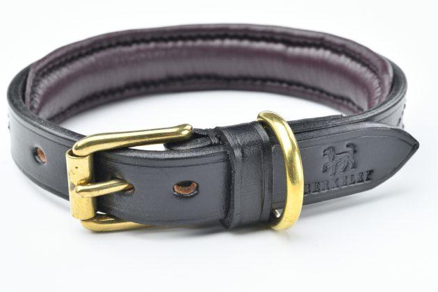 Made from bridle leather in the UK, stitched by hand. Buckles and D-rings cast as solid pieces of brass. Available in black or dark brown to take dapper dogs from the village show to the field.