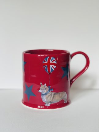 Hang the bunting, put the kettle on and toast Her Majesty with a corgi cuppa. Limited edition, made in Stoke-on-Trent. Available in pink, blue and red.
