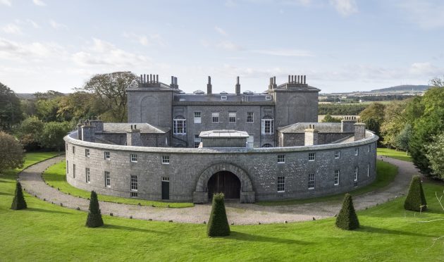 James Playfair designed this 10-bedroom, A-listed neoclassical country house, and Sir John Soane completed it. The property, with 16 acres and views over Aberdeenshire, home to Balmoral Castle, is approached down a drive of three-quarters of a mile and is built over four floors, with the first floor the main living space. There is a four-acre walled garden and large lawned areas divided by box hedging.