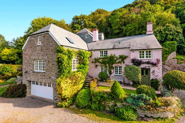 This is a Grade II-listed five-bedroom former mill house and a detached two-bedroom stone barn. The property has gardens of around two acres and is a short walk to North Sands beach and the town of Salcombe and its harbour. Features of the main house include exposed stone walls, stone fireplaces and timber beams, while the landscaped gardens include several sun terraces.