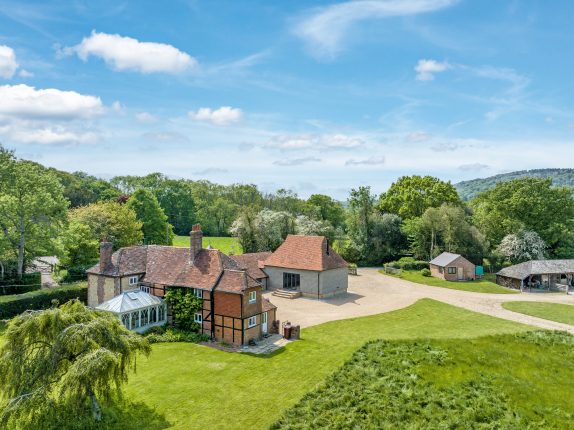 Wheelwrights House includes a Grade II-listed four-bedroom farmhouse and a two-bedroom converted, timber-framed Sussex barn and comes with just over 47 acres of land. The property has equestrian facilities including five stables, a manège, feed store, tack room and foaling box, with an office building next door. The land includes grazing with extensive stock-proof fencing and a small area of woodland.