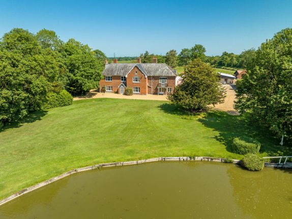 Dating from the 17th century, White House Farm is a Grade II-listed seven-bedroom farmhouse with a self-contained annexe. The lawned gardens and grounds extend to nearly four acres, including a lake. There is plenty of development potential as two barns have planning permission for conversion into two detached houses. Yaxley village is five miles from Diss and 20 miles from Ipswich.